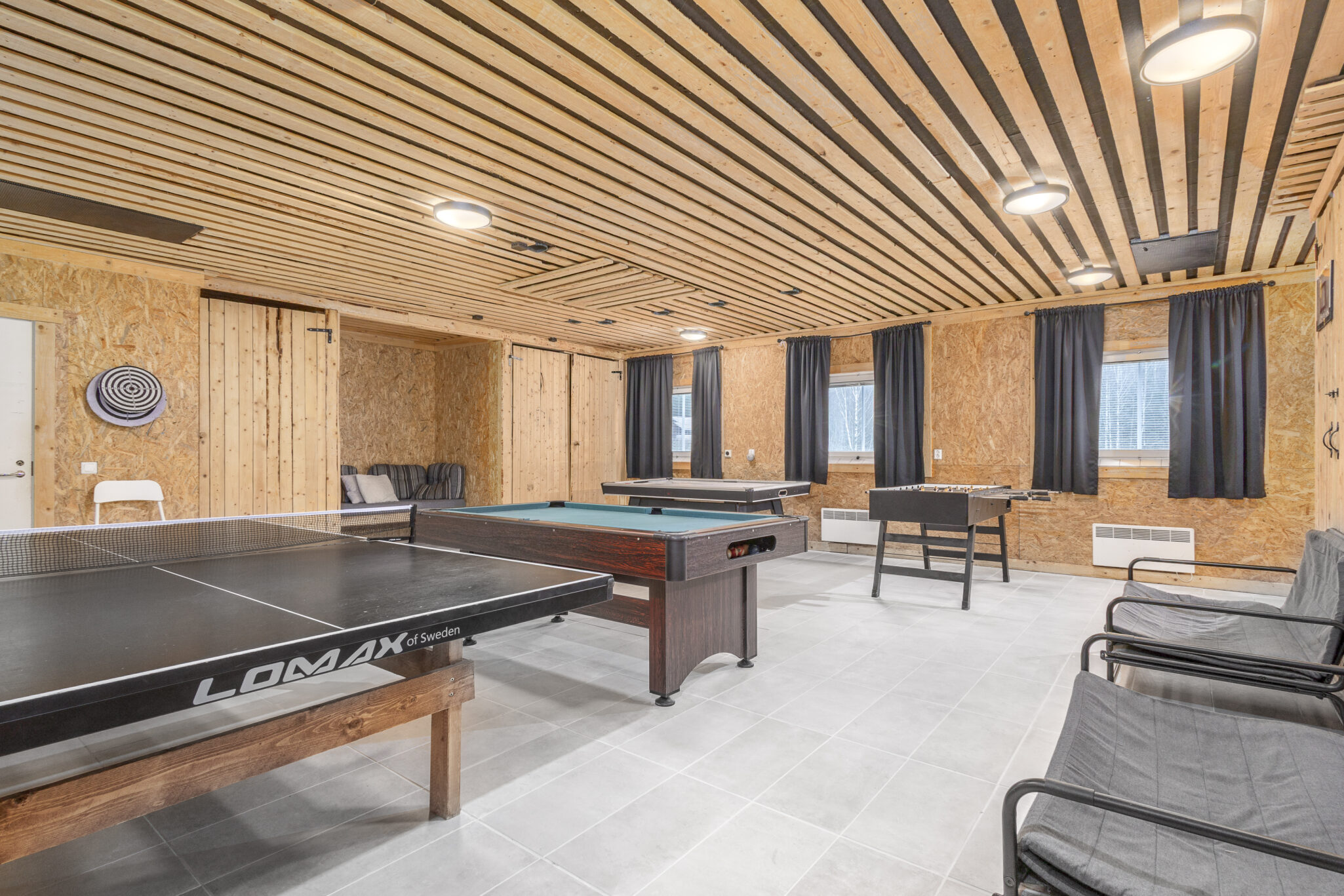 Peasaal on ideaalne suurte esitluste jaoks projektsiooniekraanil ning tõeliste saunahuviliste rõõmuks on olemas kaks sauna. Mängutoas saab mängida piljardit, õhuhokit ja lauatennist ning terrassid pakuvad aastaringselt paljajalu ligipääsu kümblustünnidele. Õhtu saabudes on koht jutuvestmiseks ja grillitud hõrgutiste nautimiseks lõkkekohtade ümber.