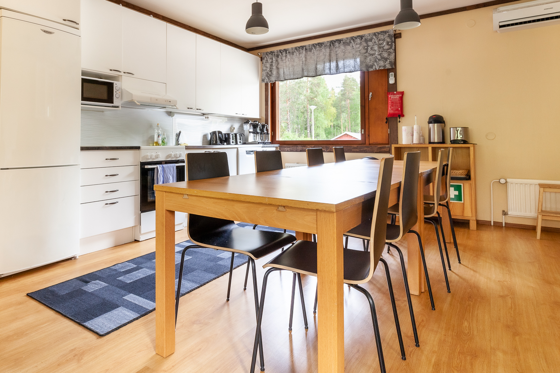 KÖÖGID: Mõlemal korrusel on hubased köögid standardsete toiduvalmistamise, söömise ja serveerimise vahenditega vähemalt 50 inimesele. Köögid sisaldavad elektripliiti ja ahju, suurt külmikut, sügavkülmikut, nõudepesumasinat, mikrolaineahju, Moccamasteri kohvimasinaid, elektrikeetleid ja rösterit. Alumise korruse avatud köök, sauna kõrval, omab otsest juurdepääsu rannaterrassi grillimisalale.
