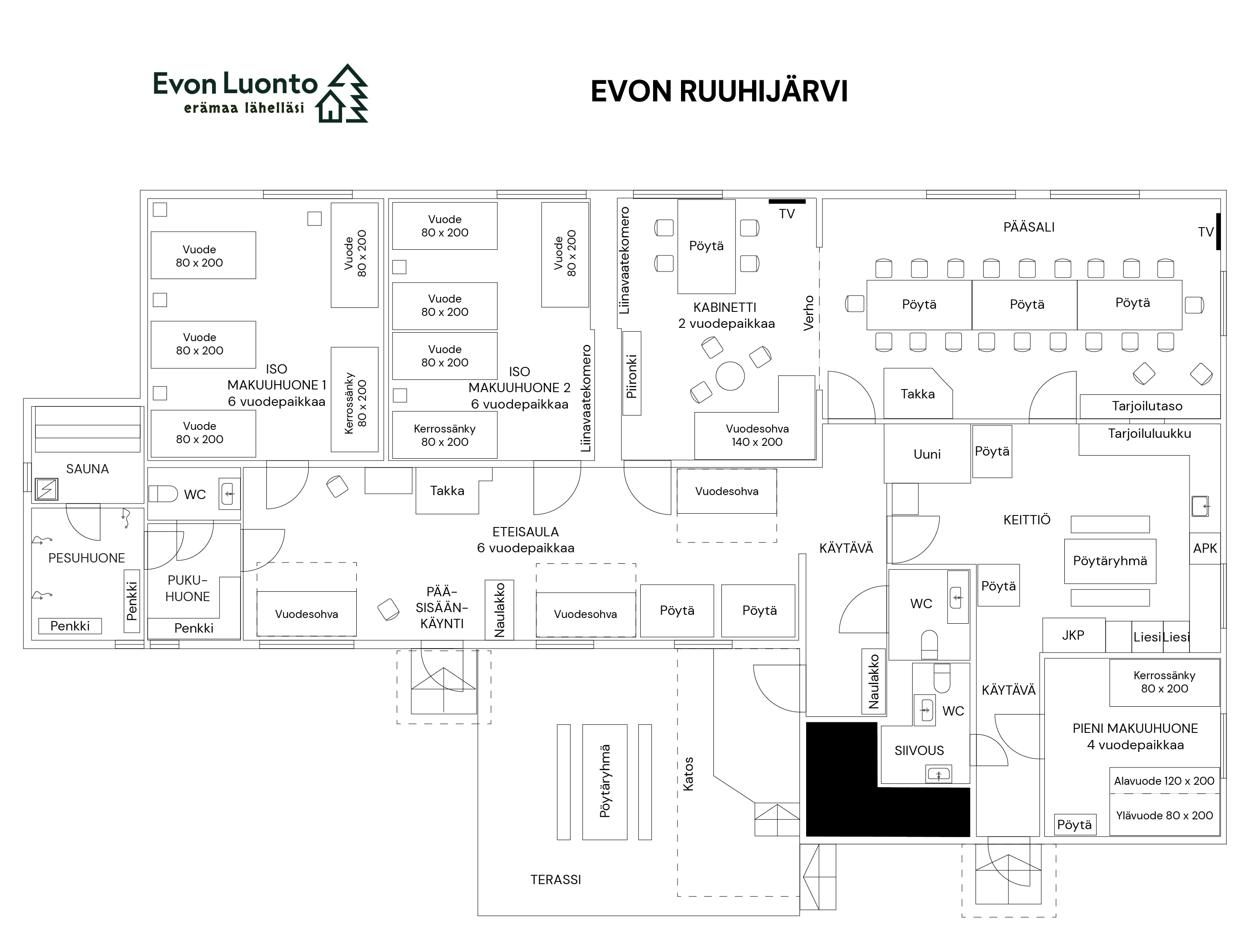 Asudes omaenda eraldatud järvekaldal, pakub Evo Ruuhijärvi kõikehõlmavat mängumaad nii igapäevaeluks kui ka erilisteks tähistamisteks, olgu tegemist äriliste ürituste, erapidude või lihtsalt puhkusega looduses.